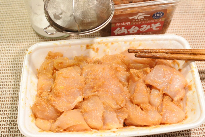 じつに簡単にできて,必要な調味料は味噌と片栗粉とにんにくだけ。油は鳥皮と脂身から出てくるので不要。加熱時間も短くすぐにできます。そして加熱に伴い身が縮んで出てくる肉汁は片栗粉が受け止めてくれるのでべちゃべちゃにもなりません。大きめに切ったむね肉を,フライパンのフタをあけたまま調理するので温度が上がりすぎることもなく固くならずにふんわりと仕上がります。ごはんのおかずにも酒のつまみにも最適。筆者は週に1回くらい,カミさんから「アレ作って」と言われてむね肉を渡されるのです…(画像/MWS)。