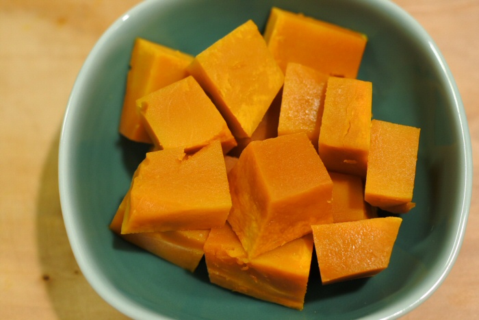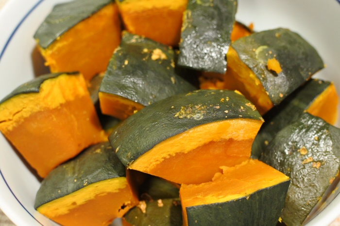 ことしはカボチャの当たり年かもしれません。入荷するものどれも高品質です。当室ではカボチャ料理なるものはほぼ存在せず,チンしてそのまま食べてしまいます。ので,素材の善し悪しにはうるさいです。きょうの画像のカボチャもすばらしいもので,思わず切り出して和菓子のようにしてみました。このままお客様に出せるレベルだと思いました(画像/MWS)。