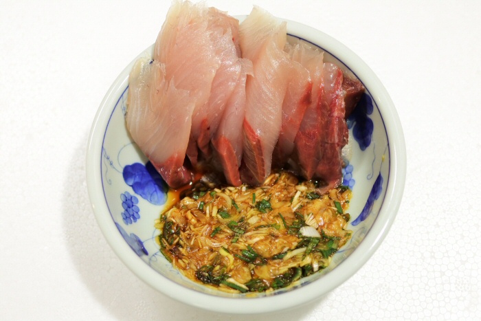 ひさしぶりに料理の画像。カミさんはブリが特に好物でワカシでもハマチでもブリでもなんでもぶら下げてきます。それぞれの味わいはまったく異なりますが食べ方の工夫でどれもたいへんおいしくいただけます。画像一枚目は昨日食べたワカシ。ネギはうんと細かいみじん切りにしてしょうゆと混ぜて15分ほどおきます。ネギ醤油です。ワカシは表面をキッチンペーパーでよく拭き取ってから身の繊維と平行にやや薄く幅広に切ります。これを混ぜてからごはんの上にのせて巻き巻きしていただきます。思い出すだけでお腹が鳴りそうなお味です。 2025年12月19日