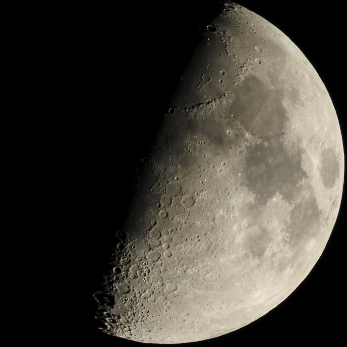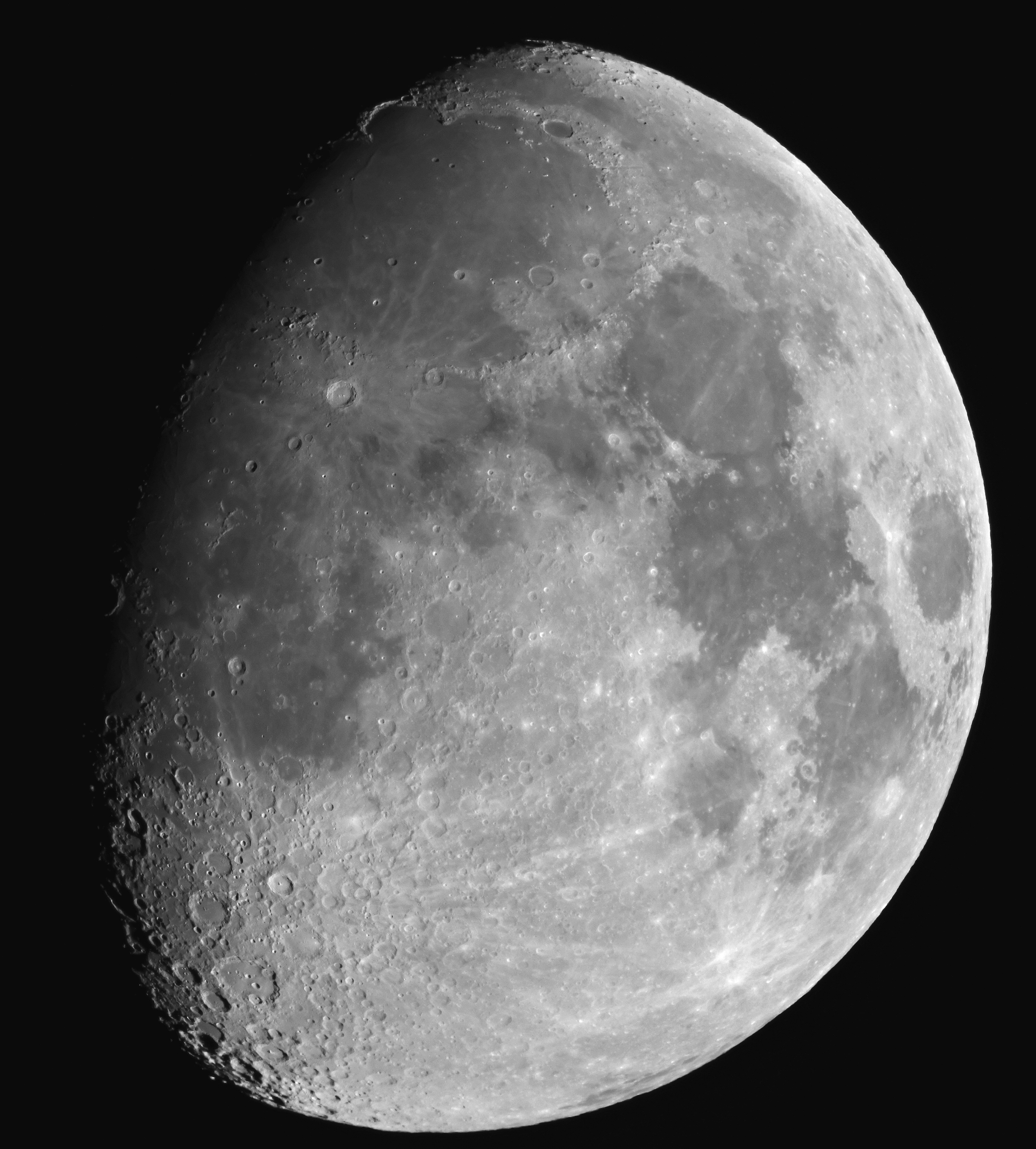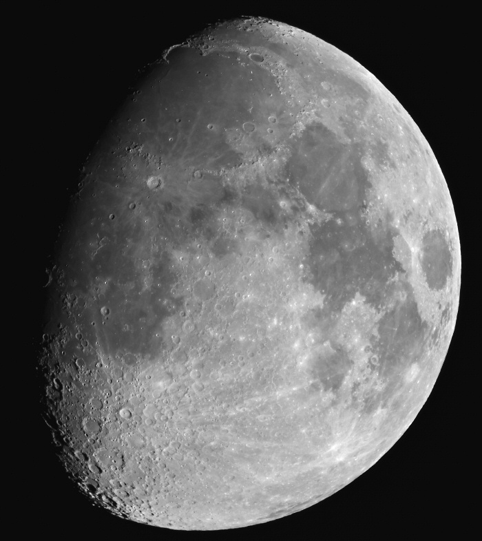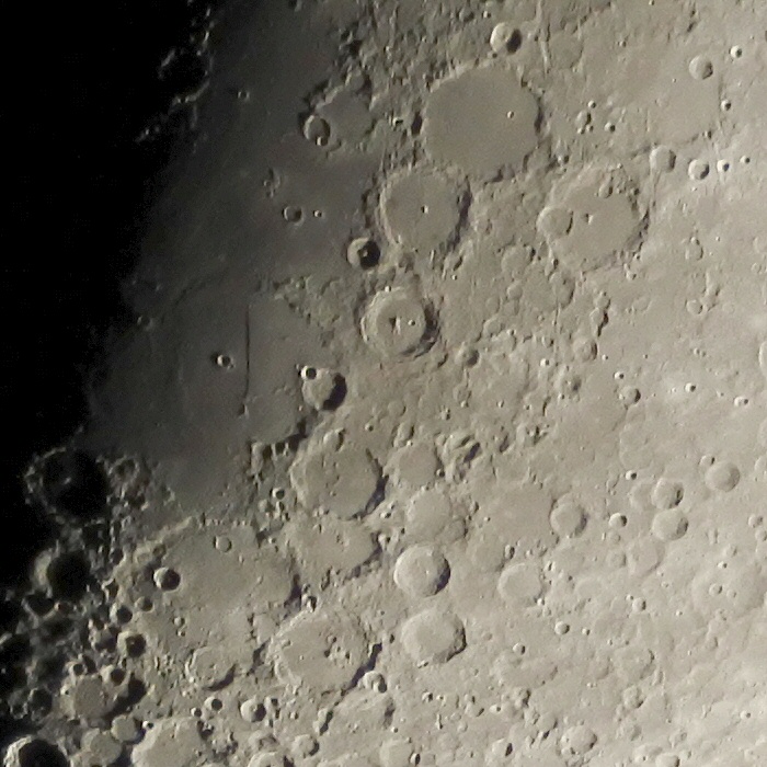 30日も朝から気流が安定していてあたたかく,とても年末とは思えない天気でした。ので,しつこく月面撮影。透明度は昨日よりさらに落ちていて薄雲もかかっています。シーイングも昨日より悪化しています。撮影できるタイミングはあまりなかったですが,1枚だけ,それなりに解像している絵が撮れました。きょうはモノクロで画像処理。気流がよければもっと写るかもしれませんが,年末でこれだけ月面が安定して見えるのは希有なことでここに掲載する次第です。全景の等倍切り出しは こちら に置いておきます。 2025年12月30日