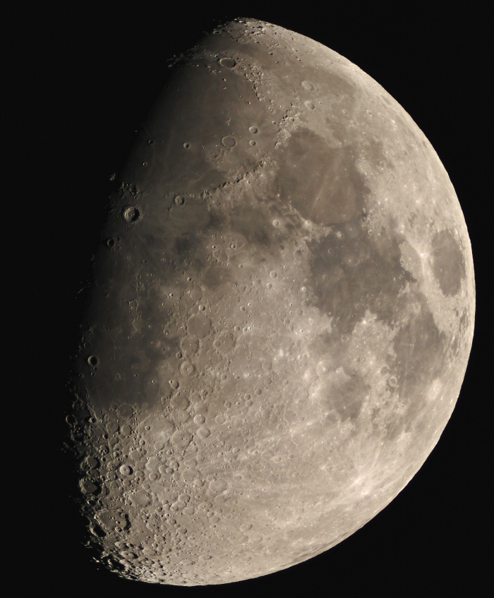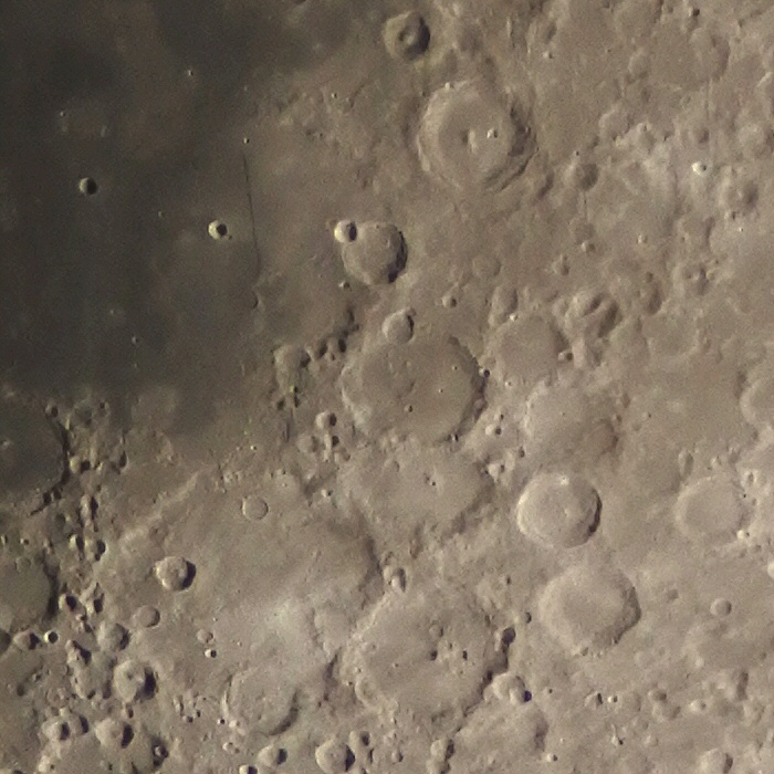 29日も朝から気流が安定していて風もなくとても真冬とは思えない天気でした。ので,またまた日没を待ち月面撮影。透明度は昨日よりさらに落ちていますがシーイングはまずまずで風もなく,方位的にも良い位置で気合いを入れました。久しぶりに5インチアポを組み上げて経緯台での撮影。写真用三脚にのせているので振動が減衰せずに撮影はいつも苦戦します。撮影にはいろんなコツがあります。まずミラーレスは必須。振動対策です。これはNikon1J5なので問題なし。シャッターはセルフタイマー10sで対応しますが振動の減衰に間に合わないこともあります。ので,シャッター速度を1/500秒以上に設定します。振動が50〜100ピクセル以内でこのシャッター速度なら何とかなるかなとの設定です。しかし高速シャッターを切るためにISO感度を上げると画質が荒れて細かな構造のS/Nが下がります。バランスが必要なのです。きょうは試行錯誤の末にISO400となりました。ISO800ではダメでした。ピント合わせも重要です。よく月面のクレータでピントを合わせる方がおられますが,あれは名人芸と思っています。筆者は近くの恒星で輝点が最小になり,最もちらつく状態を判別してピントとしています。ピントは温度変化による鏡筒の伸び縮みやレンズの膨張などで変化するのでこまめに確認します。そしてさらに大事なことは,よく撮れたと思ってもしつこく何枚も撮影することです。気流の影響で低コントラストのクレーターが見えたり消えたりしているのです。 2025年12月29日